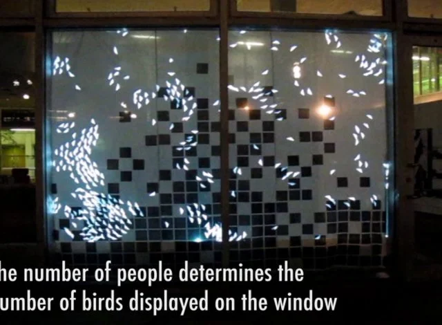 Birds is a sound responsive window instillation. The volume of birds is determined by the number of people on the inside of a space. This project was done in collaboration with artist Keely Snook and was installed at Co-Prosperity Sphere is Chicago in 2014.